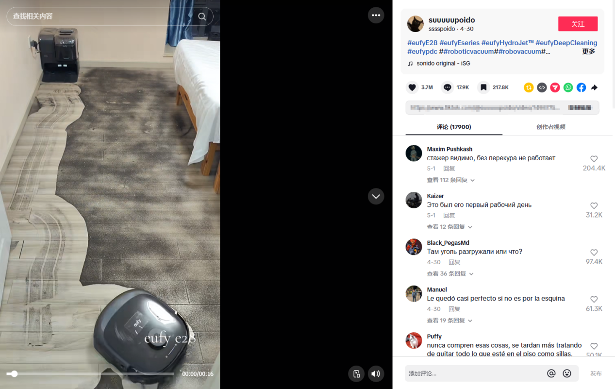 استراتيجيتهم في المحتوى دقيقة للغاية، فكل فيديو يعرض كيف يتعامل روبوت التنظيف مع شعر الحيوانات الأليفة. من رمال القطط المتناثرة إلى شعر الكلاب المتشابك، بل ويصنعون عمدًا مشاهد اختبار قاسية. هذا النوع من المحتوى "التعذيبي الذاتي" حقق نتائج غير متوقعة.