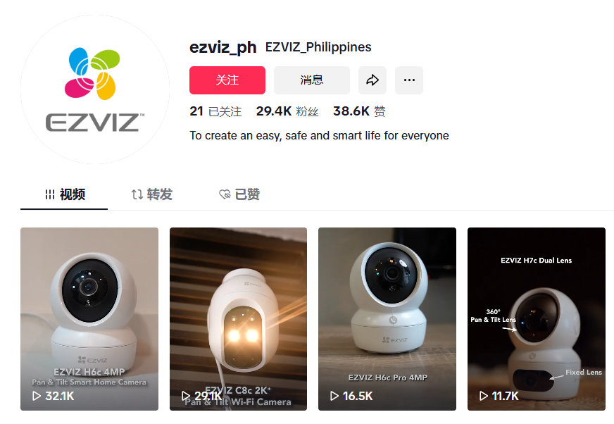 أما بالنسبة لسوق الفلبين الذي يحتاج إلى منتجات أمان منزلية متخصصة، فإن حساب TikTok @ezviz_ph عند نشر الفيديوهات، يركز أكثر على تقديم المعلومات المفيدة مباشرة، وعرض وتقديم أداء المنتج وطرق استخدامه.
