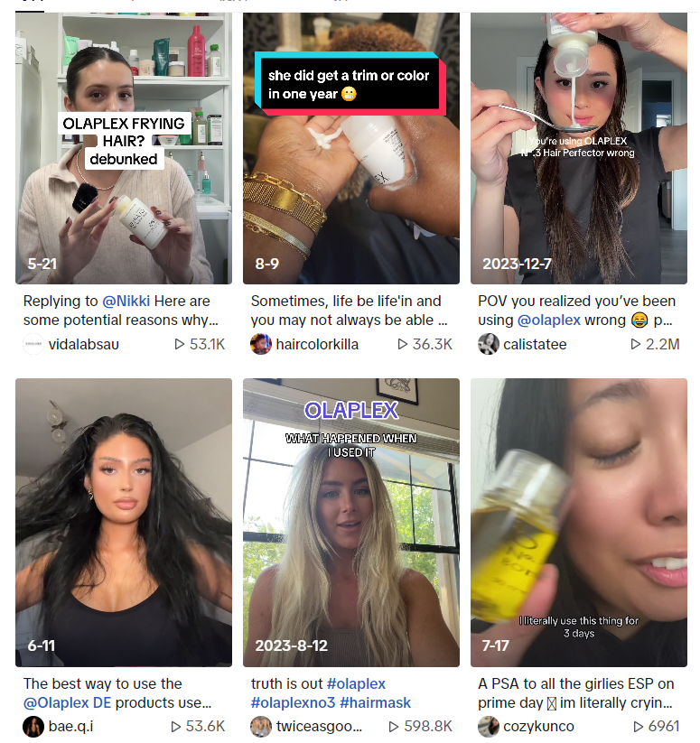 Take Olaplex as an example,Olaplex is a hair care brand focused on repairing damaged hair. On TikTok, many beauty and hair care influencers share “before and after” comparisons after using Olaplex products, showing the obvious transformation from dry, split hair to smooth and silky hair.