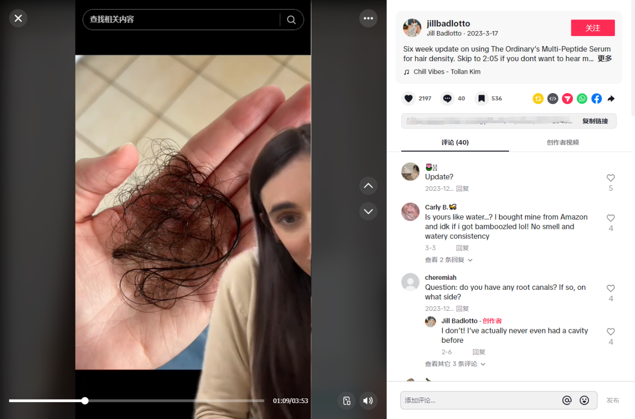 For example,the personal care brand The Ordinary launched the “Peptide Hair Density Serum”, which quickly went viral on TikTok through multiple user feedback videos.
