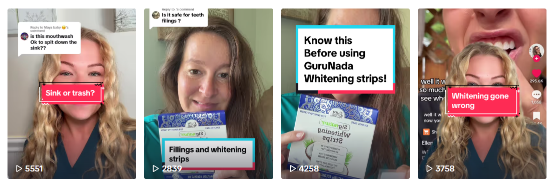 It must be said, GuruNanda really knows how to address consumers’ pain points and understands what kind of video content can attract users who need teeth whitening.