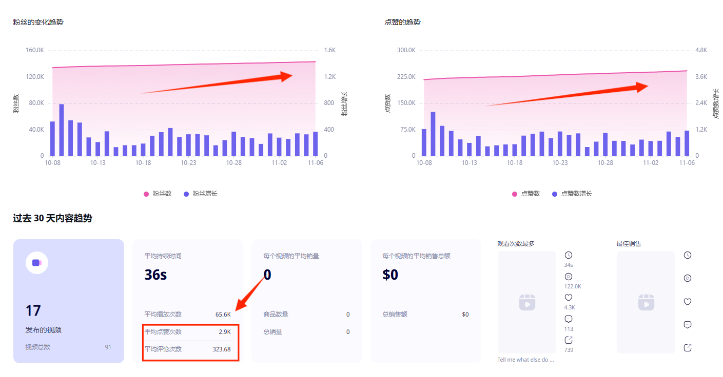 By observing the data of the TikTok account hakishoe in the past 30 days, it can be found that the average number of views of this account has reached 65,600, and both the number of followers and likes are showing a steady upward trend.