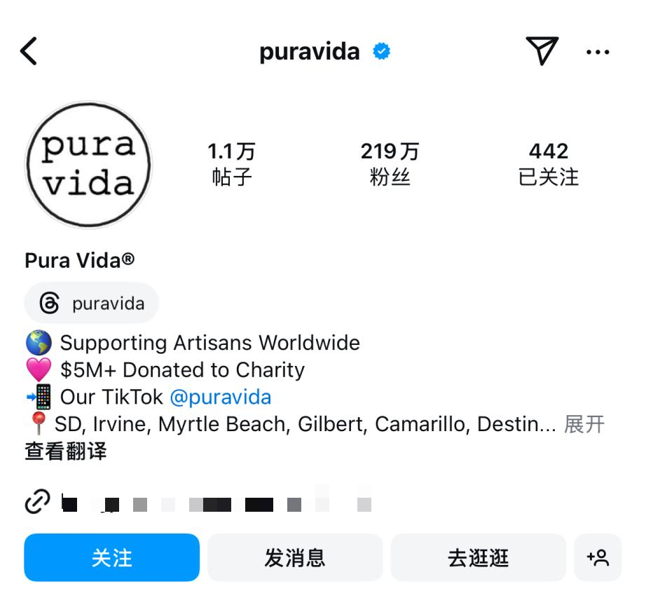 Through exquisite visual content, the brand conveys a natural, free, and sunny lifestyle. Today, Pura Vida's Instagram account has accumulated 2.19 million followers and published over 11,000 posts, further solidifying its "lifestyle + product" market positioning.