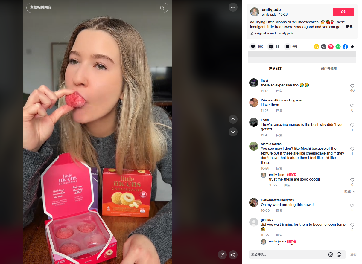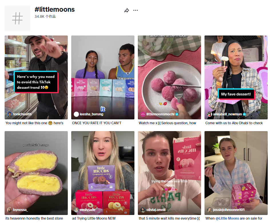 In addition to influencer promotion, Little Moons also recognized the importance of user-generated content (UGC) and launched the #littlemoons hashtag on TikTok, encouraging consumers to post videos and share their tasting experiences.
