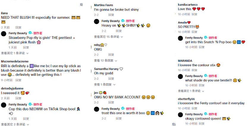 Fenty Beauty, the beauty brand founded by Rihanna, has a very active TikTok video comment section.