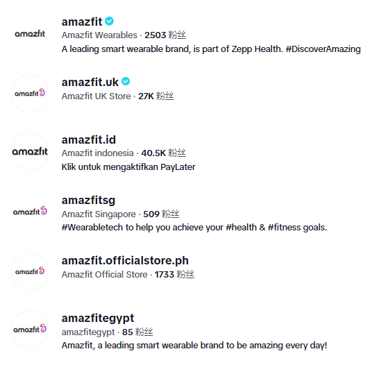 To accurately cover user groups in different countries, Amazfit has established a matrix of accounts on TikTok, setting up corresponding accounts for major target sales countries such as Indonesia, the UK, Singapore, and Egypt.