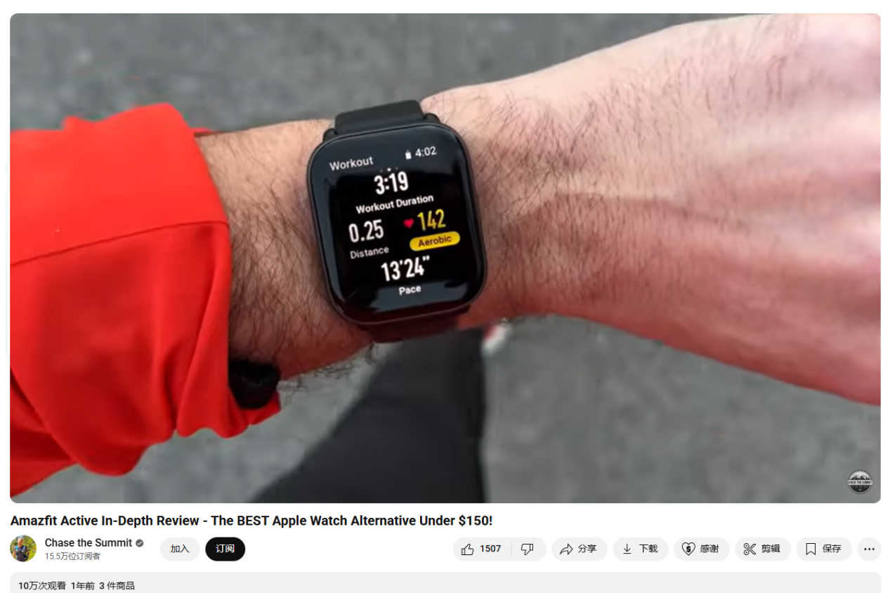 For example, it cooperated with tech blogger Chase the Summit to shoot an outdoor review video for the Amazfit Active product, which reached 100,000 views.