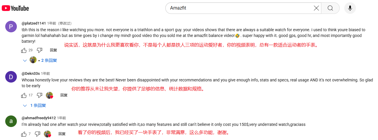 Many users leave comments below the video, such as "To be honest, this is why I prefer watching you, not everyone is a triathlon enthusiast, your video shows that there is always a watch suitable for athletes." "Your recommendations have never disappointed me, you provide enough information, statistics, and specifications."
