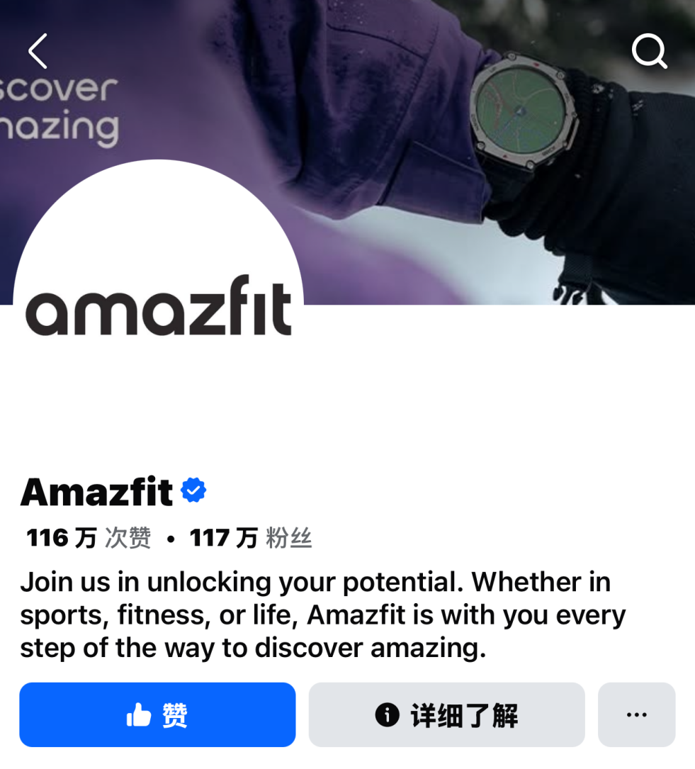 On Facebook, Amazfit's account has reached 1.17 million followers, making it the channel with the largest number of fans among all its social media platforms.