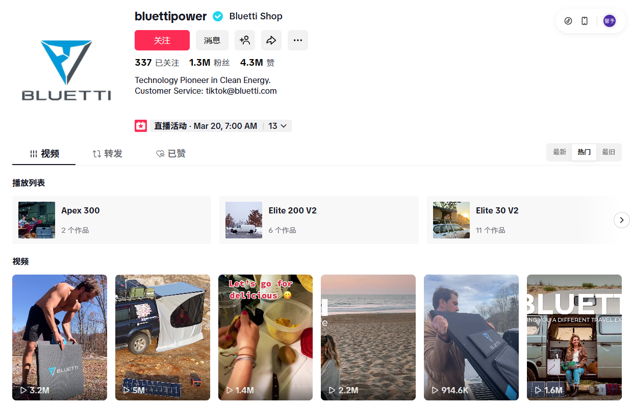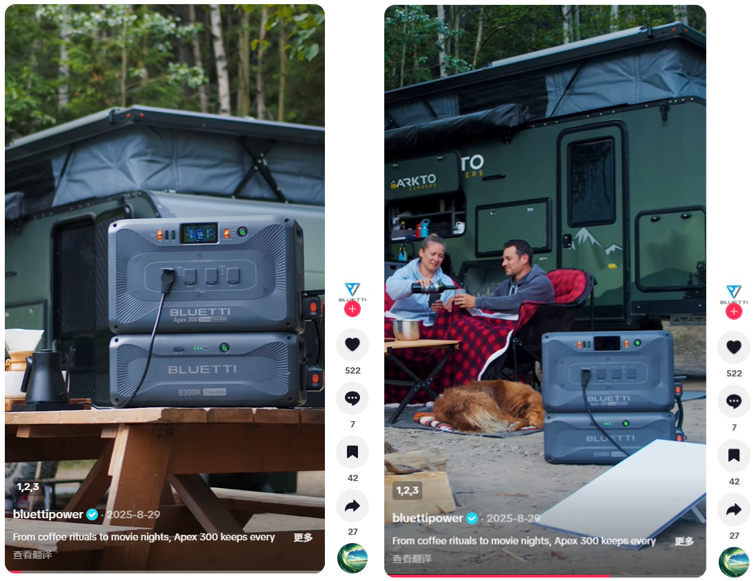 Currently, its main Tuke account @bluettipowe has accumulated 1.3 million followers. The core logic of this account is not to pile up product parameters, but to penetrate with scenario-based content.