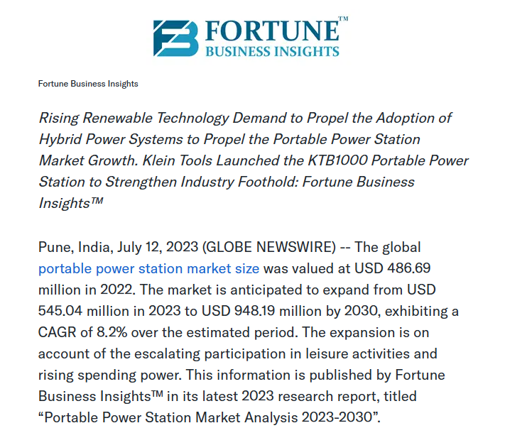 Data shows that the global Portable Power Station market was about $487 million in 2022, and is expected to grow to $948 million by 2030, with a compound annual growth rate of about 8.2%.
