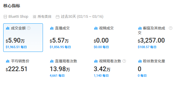Data shows that their brand account's transaction amount in the past thirty days was $59,000, of which live streaming contributed $55,700, accounting for more than 94%. It can be seen that live streaming is already a major focus of their operations.