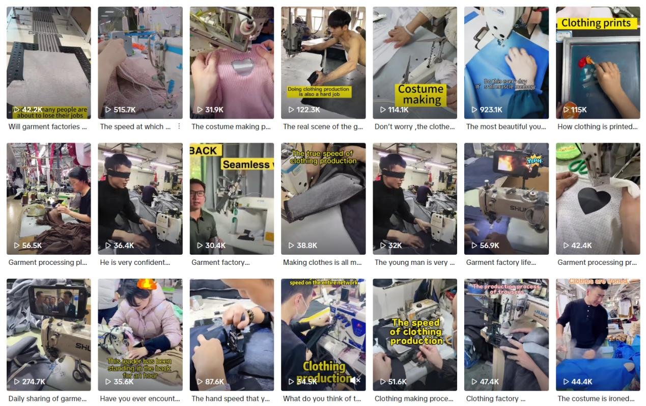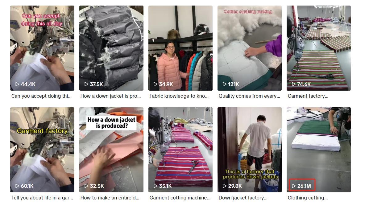In the videos, Kuang Kuang uses real shooting to authentically showcase the internal environment of the factory, the processing procedures, and details of garment making. Authentic video content is more likely to leave a good impression on customers and increase their trust in the factory.