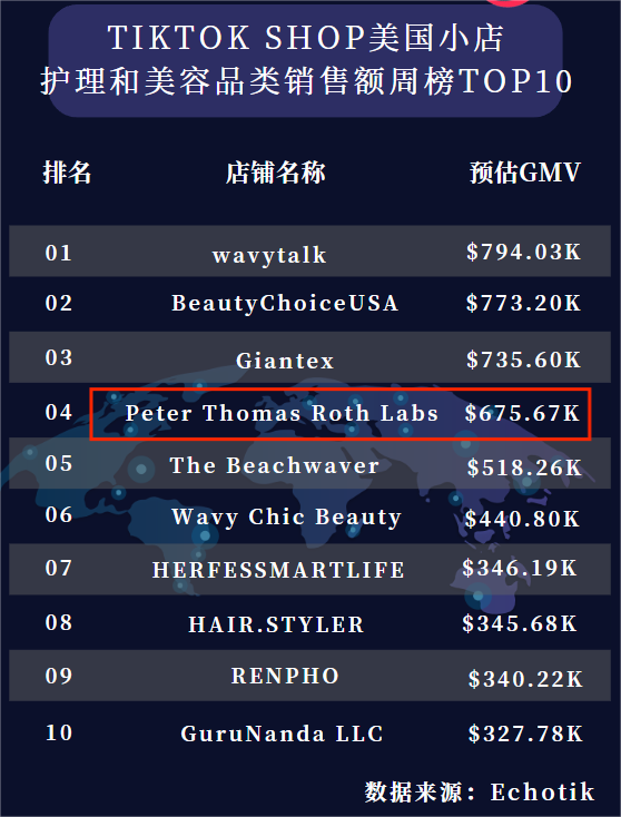 According to Echotik e-commerce data platform, in the care and beauty category, a small store named Peter Thomas Roth had an estimated GMV of $670,000 last week!