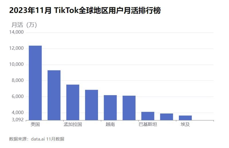 The United States is Tuke's largest market for advertising revenue, as it has the largest advertising audience in the US. According to data.ai's public data in November, Tuke has more than 120 million active users in the United States.