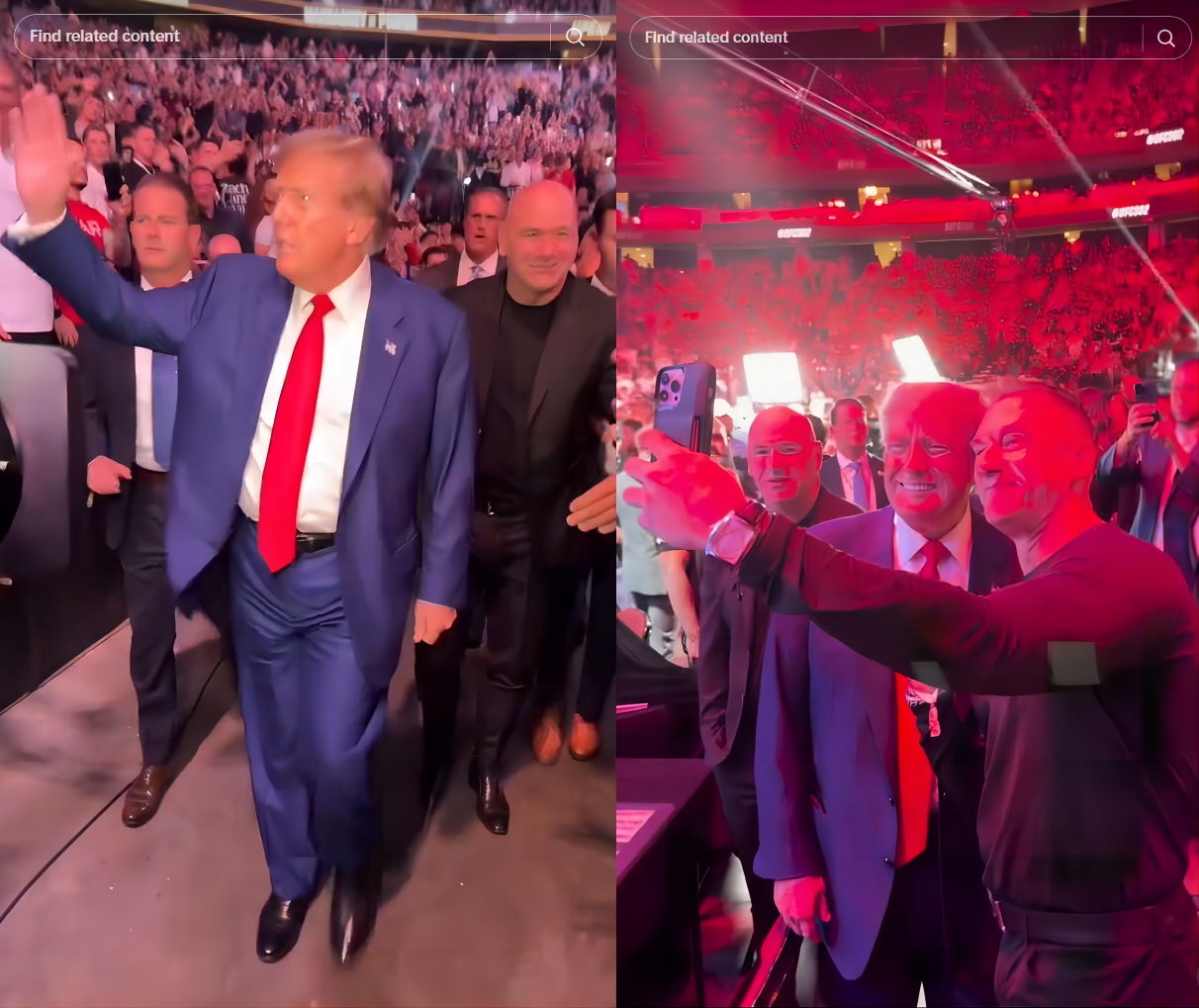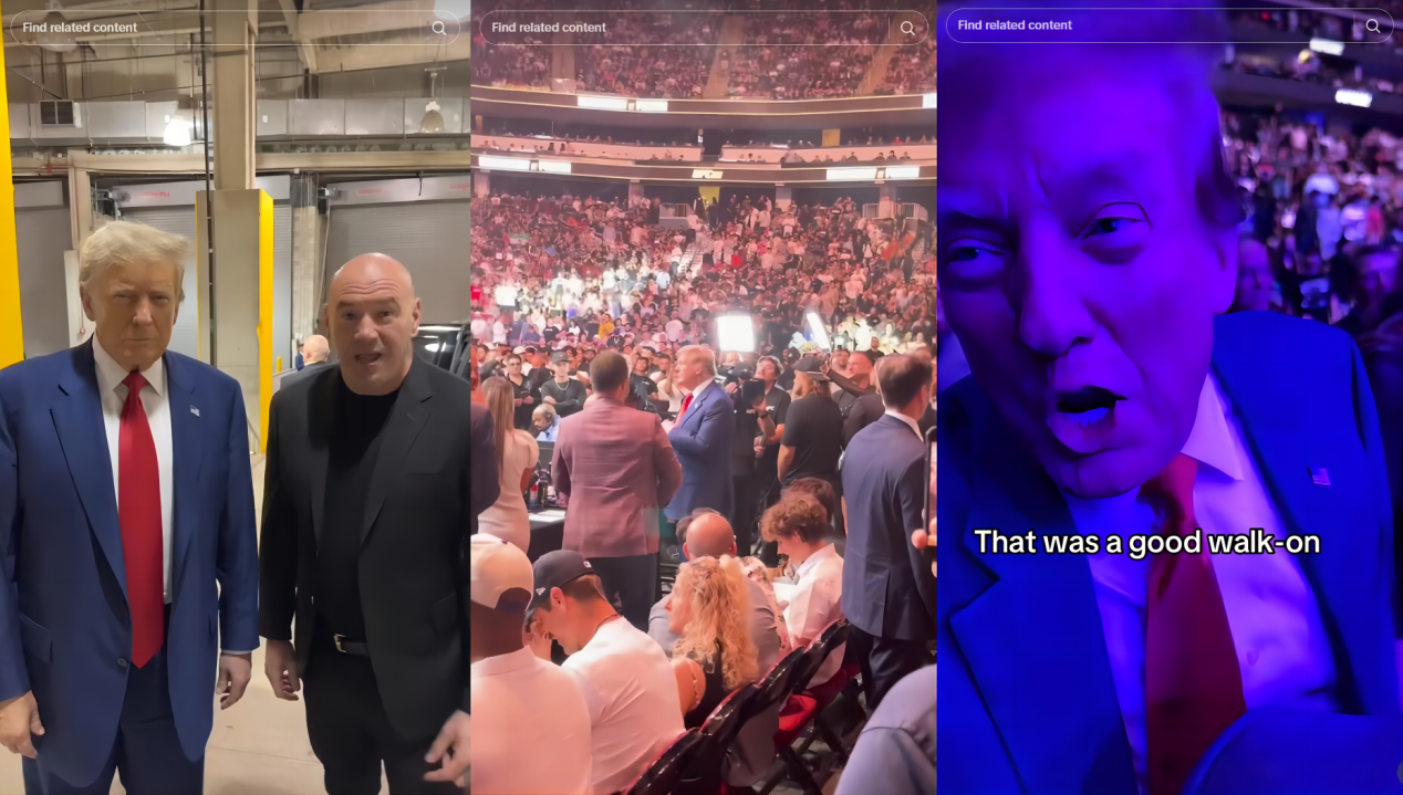 In the footage, Trump appeared at the scene of the Ultimate Fighting Championship mixed martial arts event.