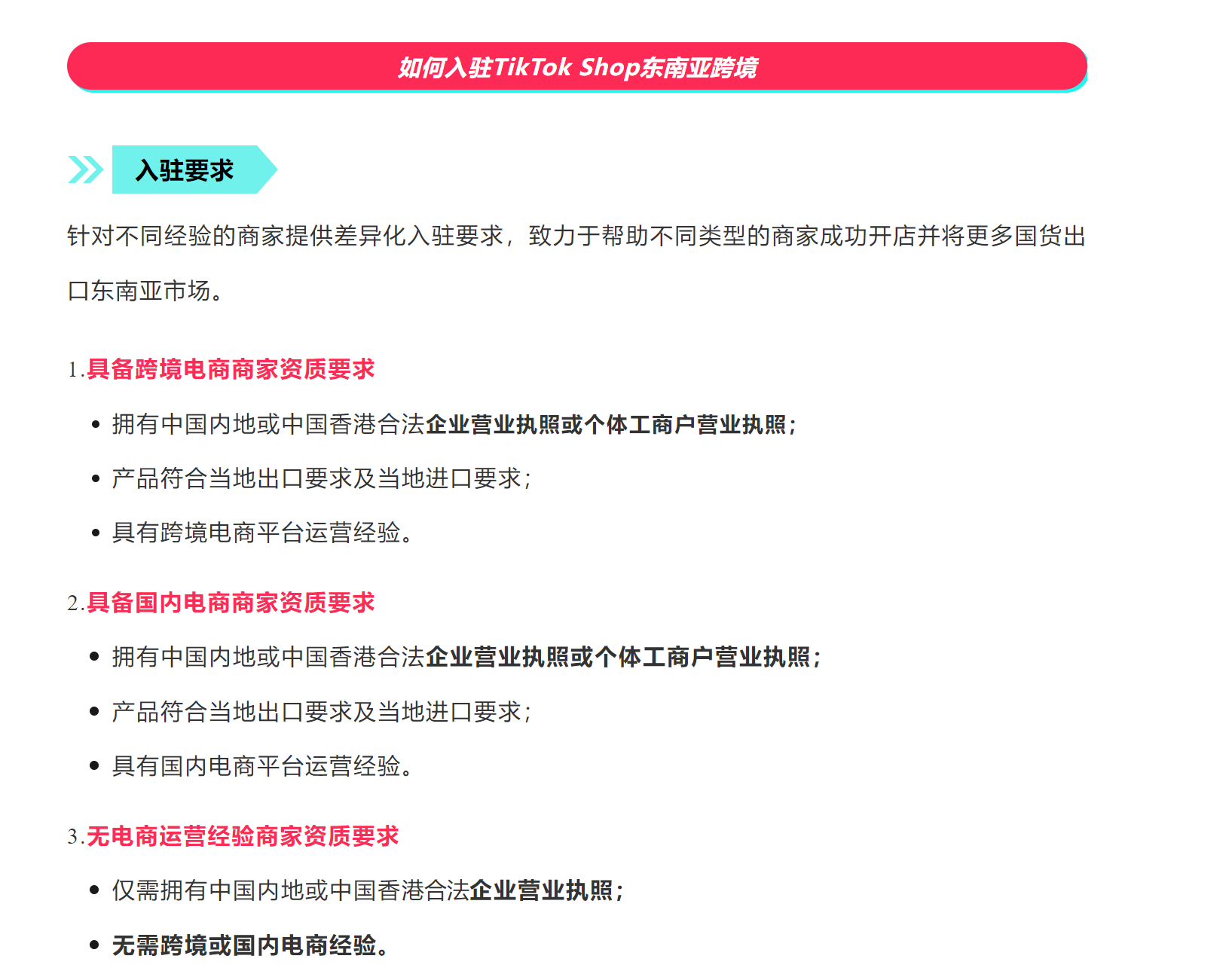 Recently, TikTok Shop announced the lowering of the threshold for cross-border entry in Southeast Asia. According to the latest policy, business licenses are now open for merchants without e-commerce experience, and individual business licenses are open for those with cross-border and domestic e-commerce platform experience.