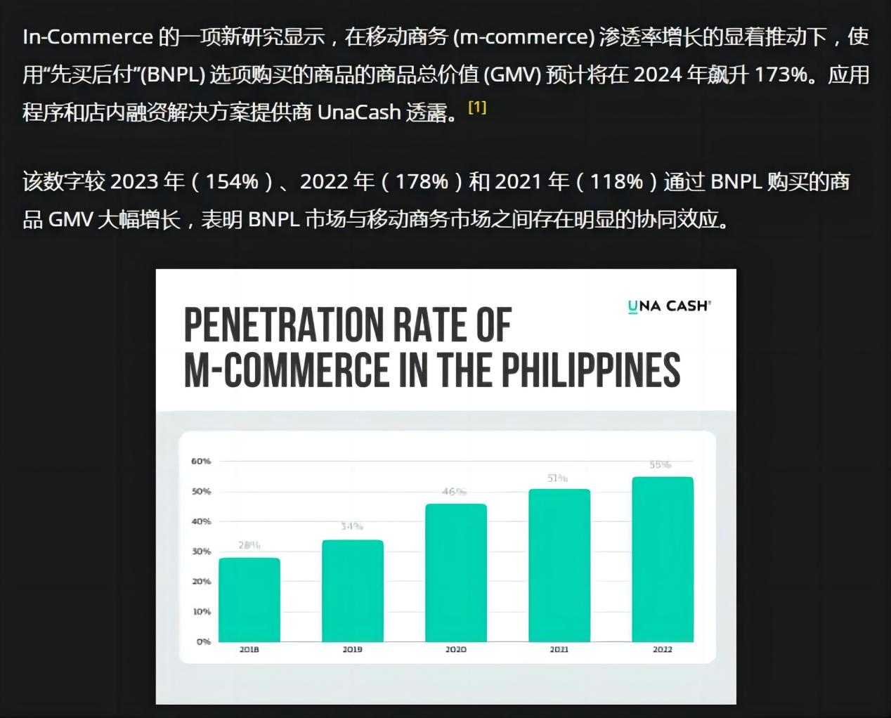 In fact, the popularity of BNPL in the Philippines has long been evident. An earlier research report released by UnaCash indicated that BNPL is very hot in the Philippine market. The data shows that from 2021 to 2023, the total gross merchandise value (GMV) of transactions achieved through BNPL services saw triple-digit growth: 118% in 2021, 178% in 2022, and 154% in 2023. It is expected that in 2024, the market will continue to expand, with GMV expected to soar by 173%.