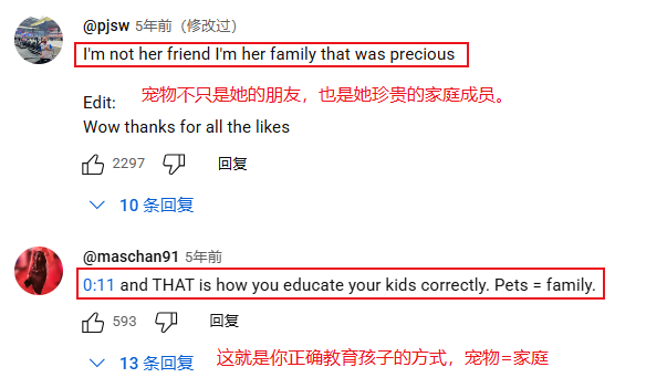 “Así es como se educa correctamente a los niños, mascota=familia.”