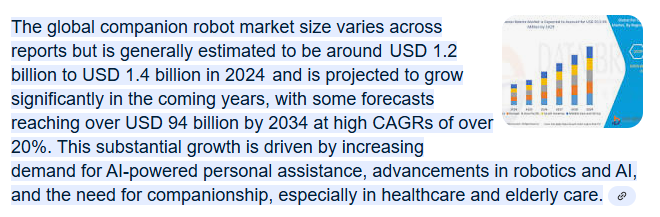 Para 2034, el tamaño del mercado global de robots de compañía alcanzará los 94.000 millones de dólares estadounidenses.