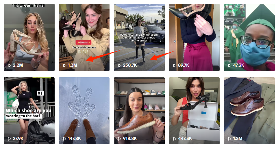Además, la marca ha creado muchos vídeos de tipo narrativo, como el POV (primera persona) “ser elogiado por un desconocido por los zapatos” o el escenario retro “qué zapatos usar para una entrevista en 1945”, utilizando historias para atraer la atención de los usuarios.