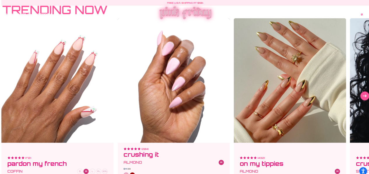 Pink Friday Nailsブランドは細部の紹介に注力することで、付け爪の実用性を求める消費者を惹きつけています。