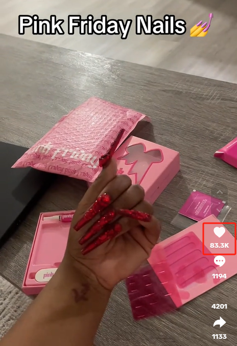 TikTokでは、Pink Friday Nailsブランドは「スター効果+一般人の体験」の組み合わせを打ち出しています。