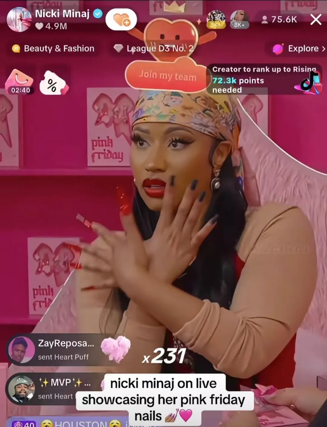 彼女自身のブランドPink Friday Nailsのプロモーションライブは、累計視聴者数が360万人に達し、TikTokライブで史上最速で1000万「いいね」突破の記録を打ち立て、1回の配信で5万人以上のフォロワーを獲得しました。