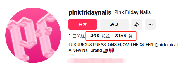 現在、ブランドのTikTok公式アカウント@pinkfridaynailsは4.9万人のフォロワーを持ち、動画の総「いいね」数は81.6万を超えています。