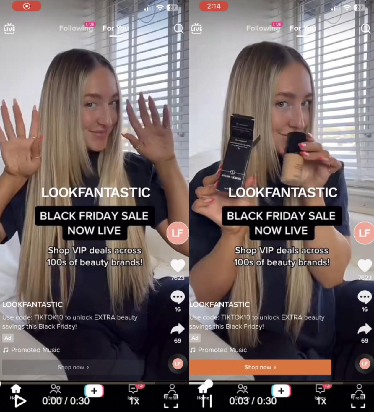 画像出典:スキンケア・コスメブランドLOOKFANTASTICのインフィード広告