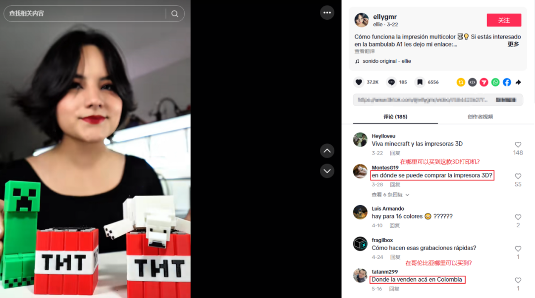 3DプリンターブランドのBambuLabがコラボした@ellygmrは、フォロワー数68.51万人でTikTokではトップとは言えませんが、3Dプリント分野に特化したインフルエンサーで、フォロワーは皆3Dプリントに興味を持つユーザーです。動画では、開封から面白い3Dプリント小物のデモまで、全て「3Dプリント」というコアシーンに沿って製品の機能や使用感を分かりやすく紹介しています。その結果、この動画は再生回数が100万回を突破し、コメント欄には「どこで買えるの?」という質問が殺到し、潜在顧客を正確に獲得しました。テクノロジー分野のトップインフルエンサーを起用するよりも、こうした垂直分野の中小インフルエンサーのフォロワーの方が「的を射て」おり、プロモーション効率も高くなります。