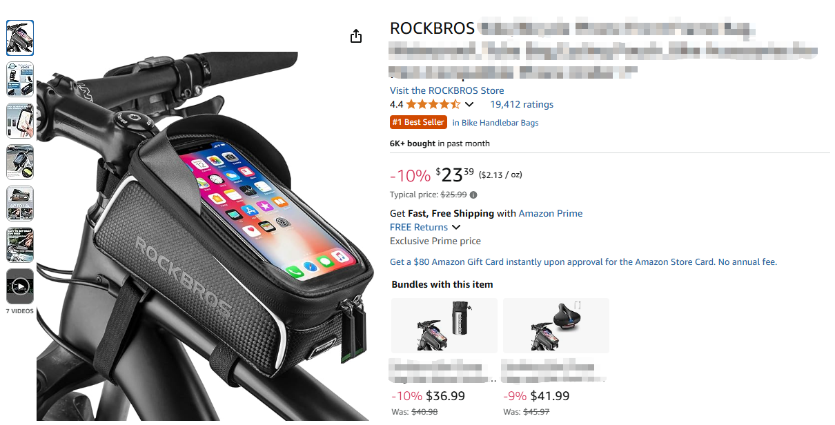 現在、Rockbrosの年間売上高のうち海外比率は6割を超え、サイクリング用スマホバッグやサイクリンググラスなどの製品はAmazonの細分化カテゴリーで長期的に売上上位を維持しています。例えば、あるスマホバッグは23ドルで、約2万件のユーザーレビューがあり、平均評価は4.4星で、市場で安定したパフォーマンスを示しています。
