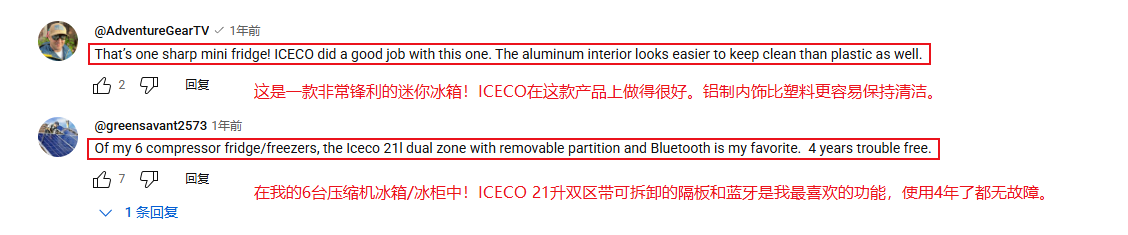 「私の6台のコンプレッサー冷蔵庫/冷凍庫の中で!ICECO 21Lデュアルゾーンは取り外し可能な仕切りとBluetoothが一番のお気に入り。4年間ノートラブルで使っている。」