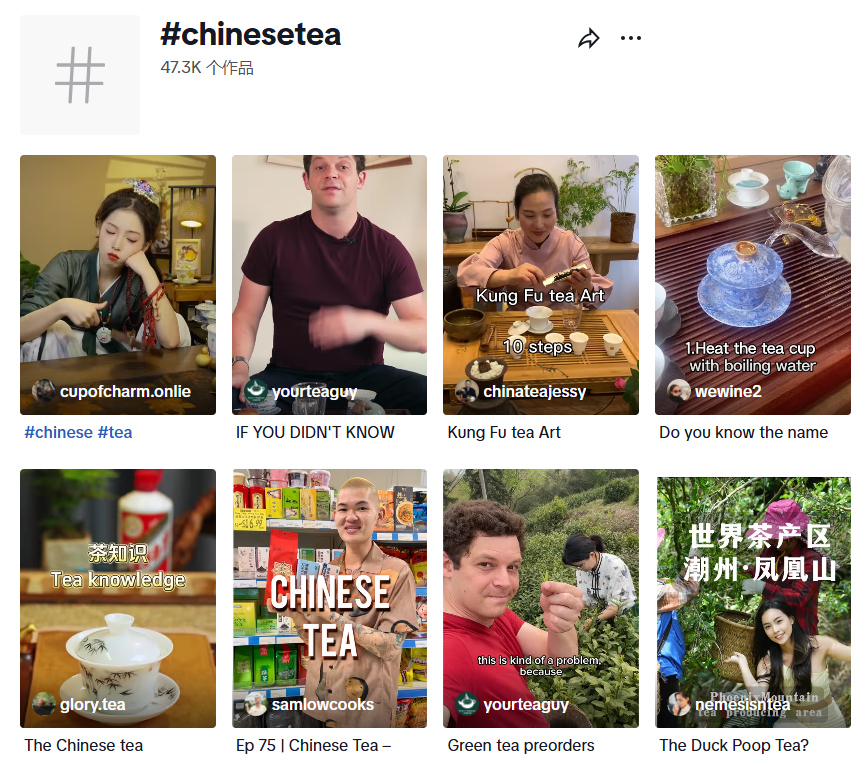 TikTokユーザーは中国茶葉に非常に高い関心を持っています。TikTokで#Chineseteaタグを検索すると、4.73万件の関連作品があり、閲覧数は4億回を超えています。