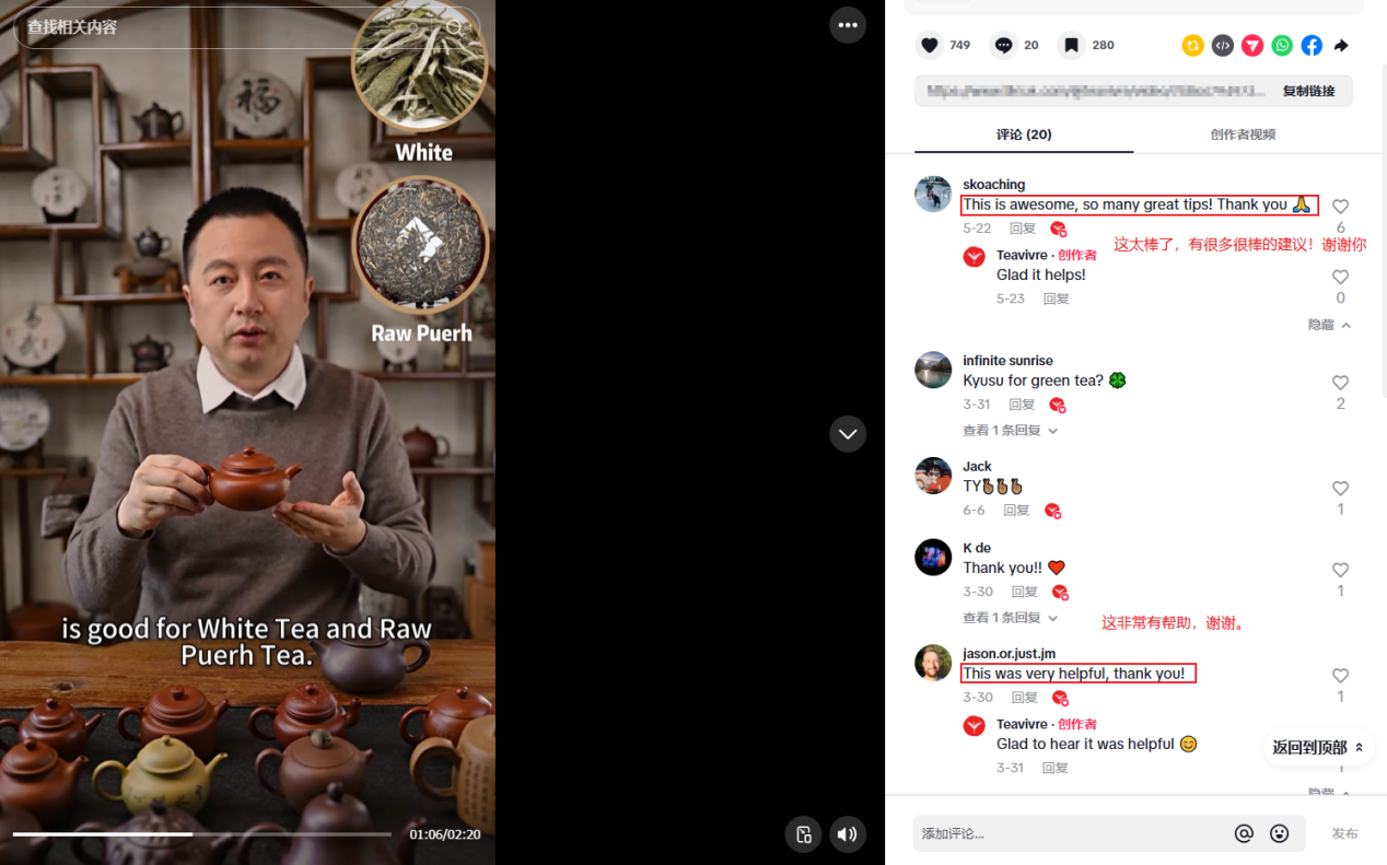 このようなコンテンツはプラットフォーム上で自然な優位性があり、多くの茶ブランドがTikTokに参入しています。TeaVivreもその一つです。
