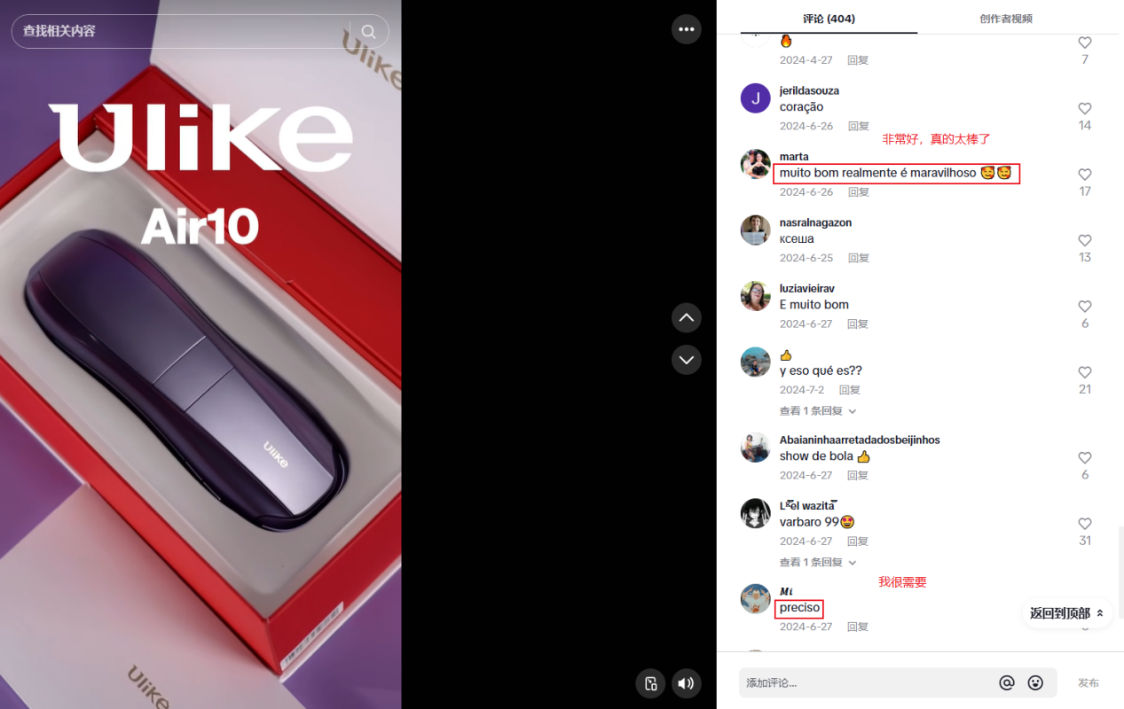Ulikeも海外市場開拓の際、この戦略を採用し、TikTokをコアなマーケティング拠点とし、その「バイラル」な拡散特性を最大限に活かしてブランド製品をより多くのターゲット消費者に届け、最終的に独自サイトへ誘導し、コンテンツ露出から独自サイトへの転換までの完全なチェーンを実現しました。