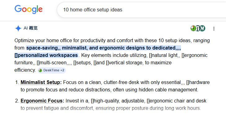 今のGoogle検索結果ページでは、上部の大部分がAI生成の要約(SGE)になっていることがあります。これは何を意味するのでしょうか?ユーザーはウェブサイトにアクセスせずに問題が解決するかもしれません。だから今のSEOの核心は、単なる「順位争い」ではなく、「AIの引用権争い」なのです。