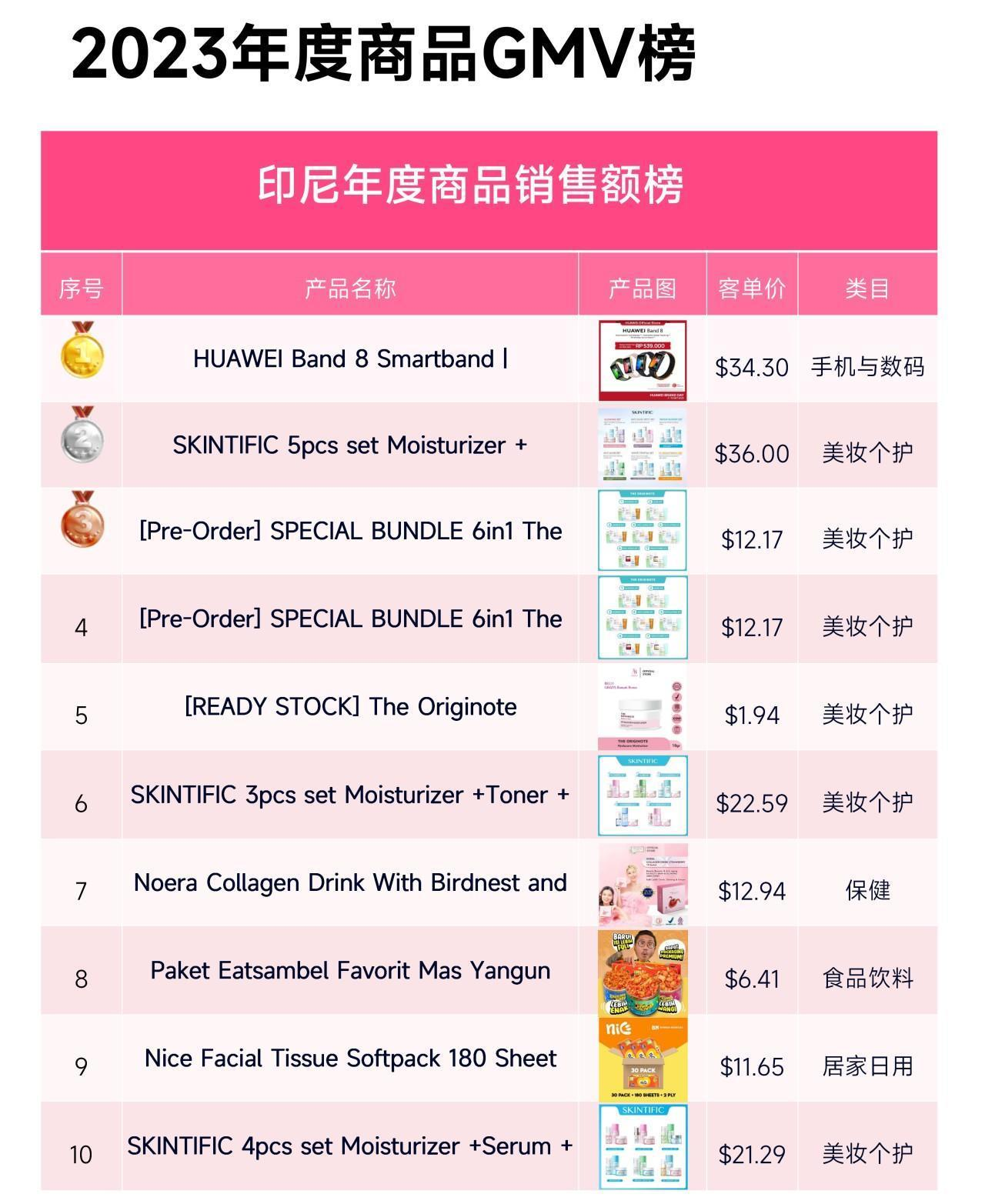 対照的に、タイ市場の商品販売ランキングはやや単調で、美容・パーソナルケアカテゴリーがトップを独占し、タイの消費者が美容・パーソナルケア製品を好むことが示されています。