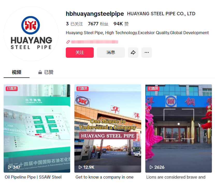 像国内有个叫华洋钢管的企业就是采用的这个办法,他们发在TikTok上的视频多为口播的形式,内容也多为车间内的生产过程,以及企业的发展史,无形中就让企业形象在观众心中立住了,这样碰到真正有需要的客户,也能展示出企业的实际实力。
