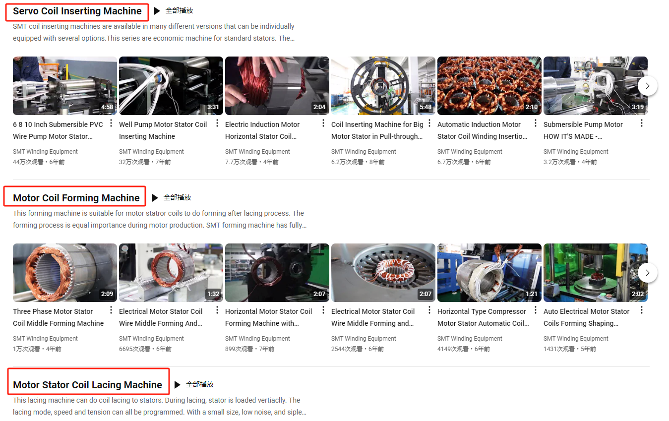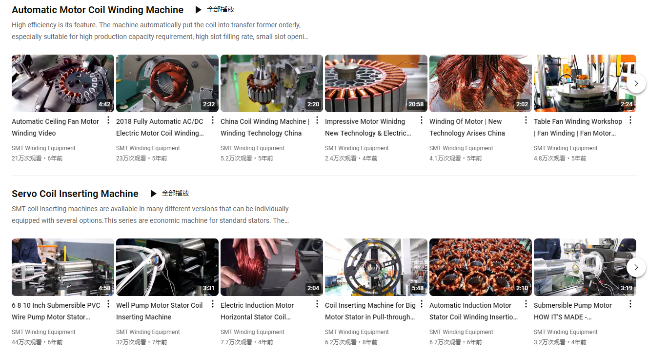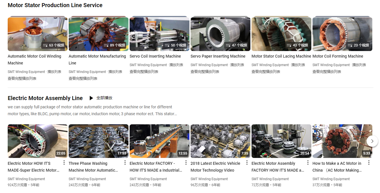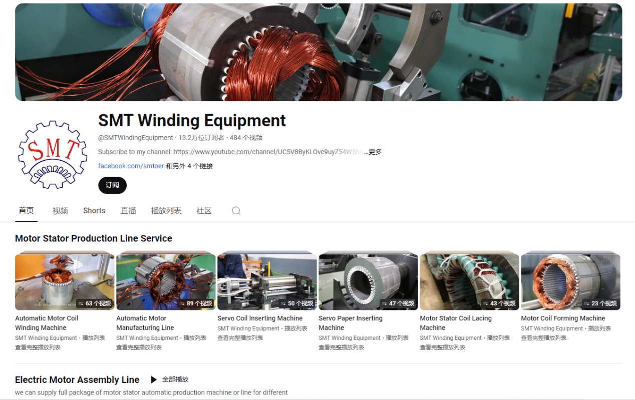截止到目前,其YouTube账号粉丝数为13.2万,频道视频最高播放量达923万次,多条热门视频突破百万浏览量,这家企业就是专注于电机制造的SMT智能设备制造(浙江)有限公司。