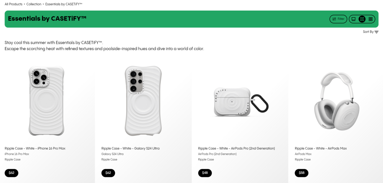 在做TikTok的同时,CASETiFY也搭建了专业且精美的海外独立站。通过专属的独立站,CASETiFY能够充分展示自己的产品,更好地吸引潜在消费者,提升销售转化率。