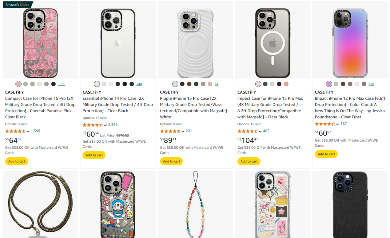 此外,CASETiFY还入驻了海外电商平台——亚马逊,增加了产品的出货途径。在亚马逊上我们可以看到,CASETiFY的商品评分都不错,而且均维持在60美元以上的一个单价。价高还不缺购买力,这才使得CASETiFY能够年销21亿。