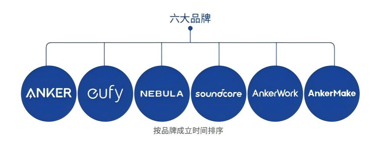 在这股科技消费新潮流中,Anker品牌无疑是潮流的引领者。Anker是安克创新(Anker Innovations)打造的六大品牌之一,其余五大品牌分别为:soundcore、eufy、Nebula、AnkerWork、AnkerMake。
