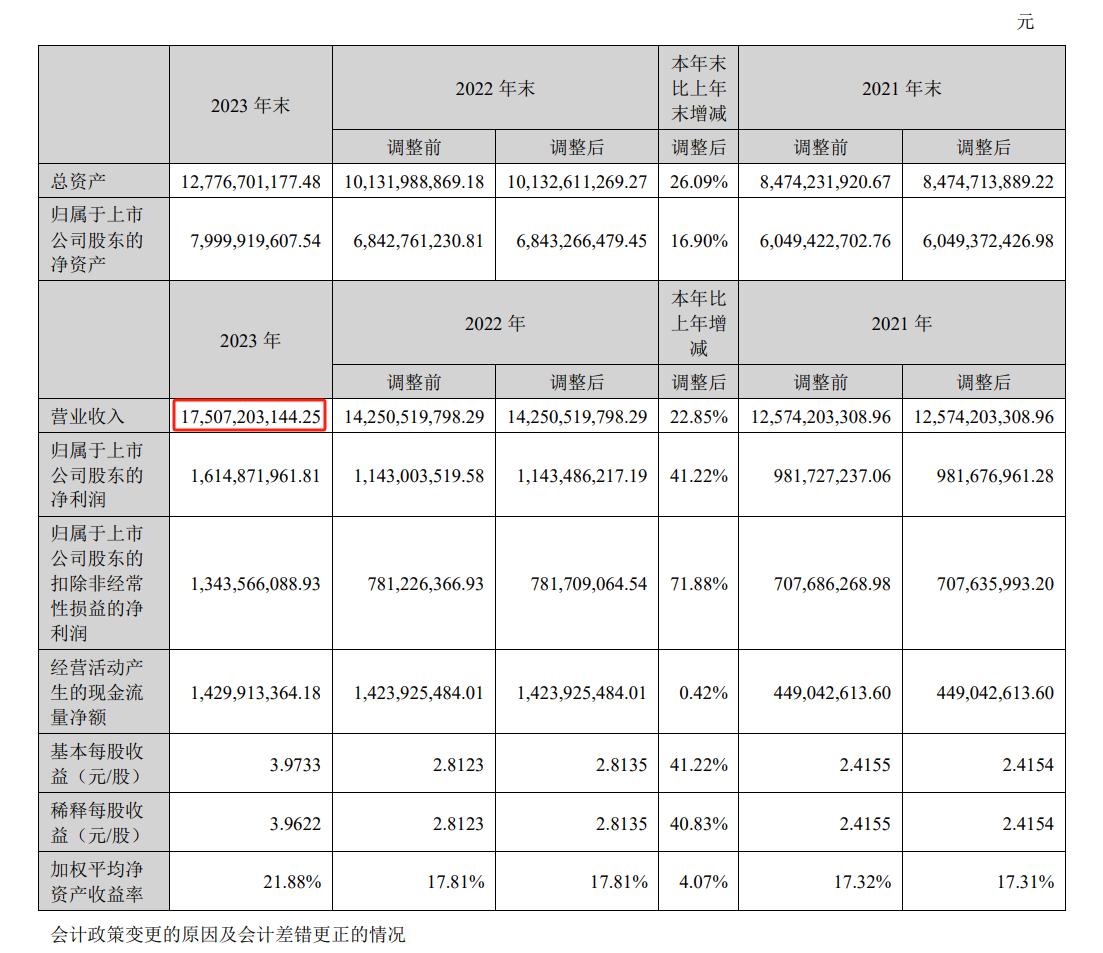 安克创新最新的财报显示,2023年,该公司实现营业收入175.07亿元,与上年同期相比增长22.85%;实现归属于上市公司股东的净利润为16.15亿元,同比增长41.22%。