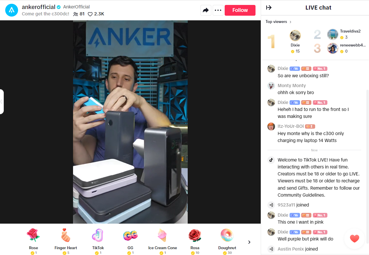 Anker的TikTok账号直播截图