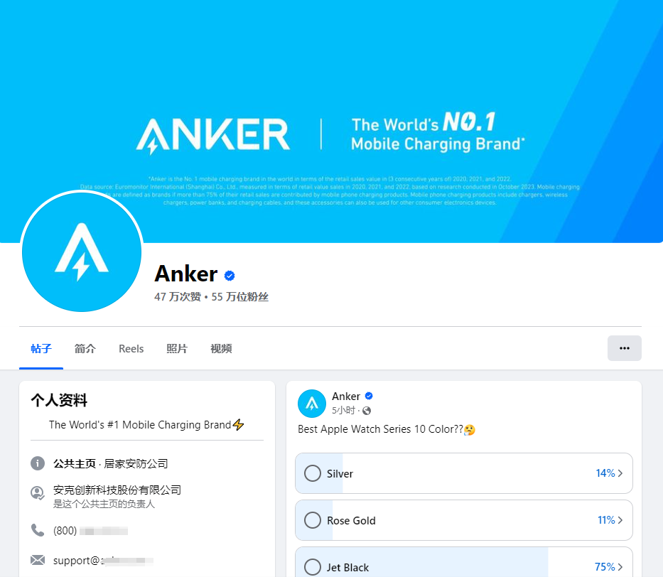 Anker的Facebook账号情况