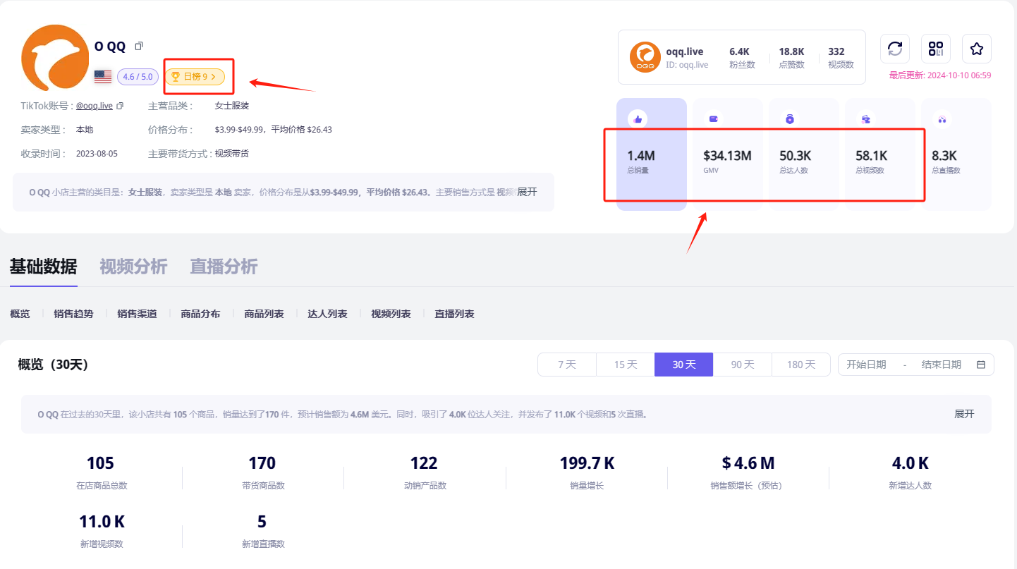 TikTok达人带货OQQ的数据