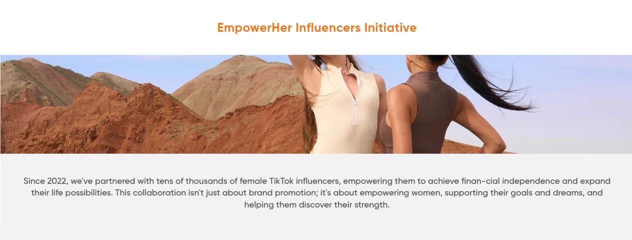 EmpowerHer Influencers计划,即通过大量女性TikTok达人带货,让女性能够实现财务独立并扩大生活的可能性。