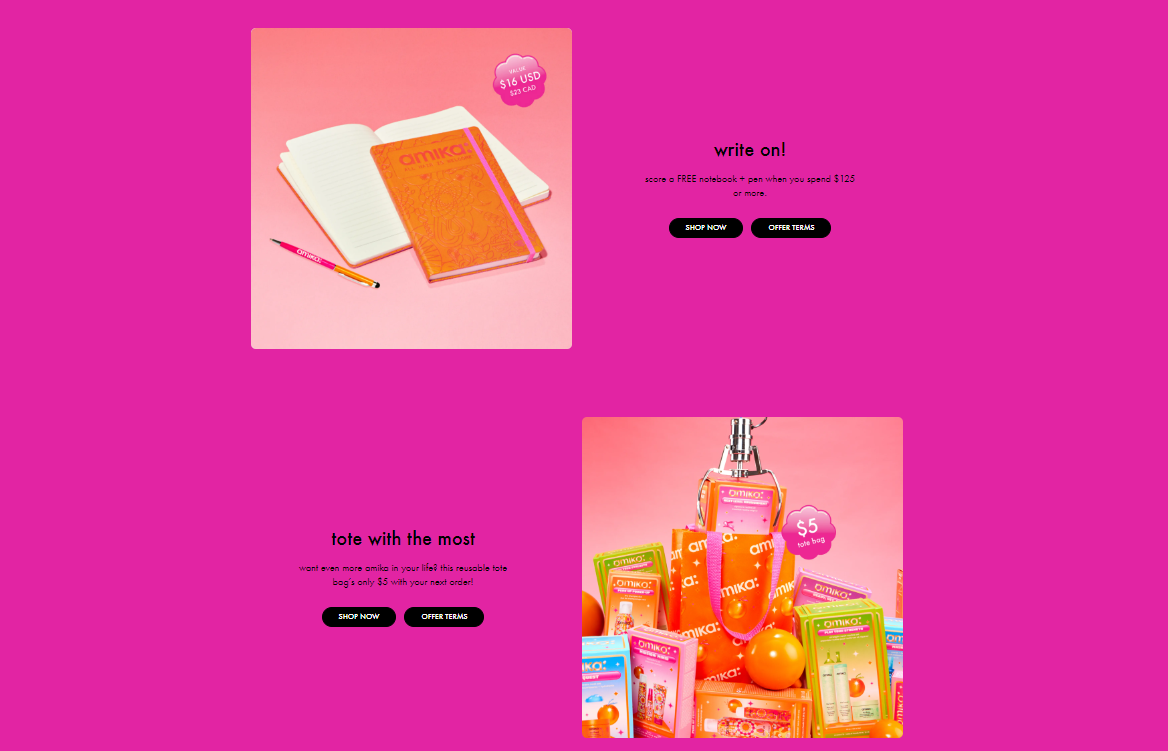 通过这些优惠和兑换活动,Amika不仅促进了用户的消费,还进一步加深了品牌与消费者之间的情感联系,有效增加了其产品的竞争力。