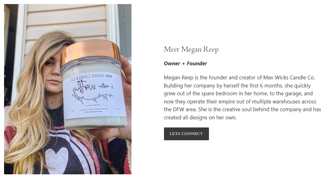Megan将她的个人经历和自我肯定的语句融入到每一支蜡烛中,希望通过这些产品,传递出正能量,帮助人们找到内心的平静和自我价值。
